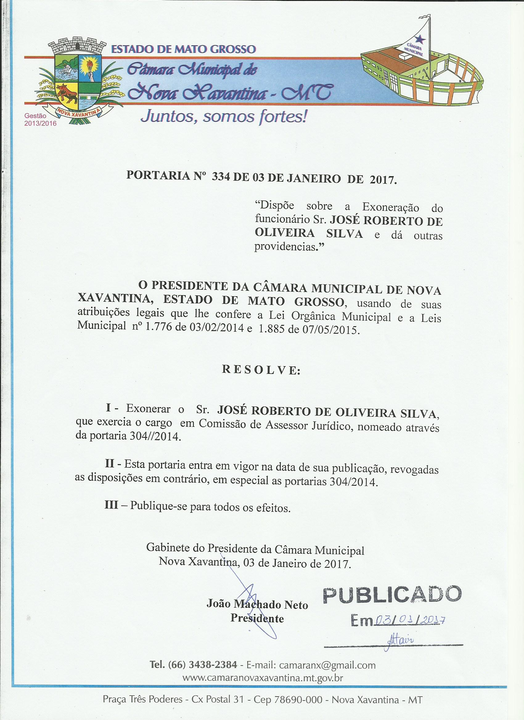 Portaria Nº 334 - Exoneração Sr. José Roberto