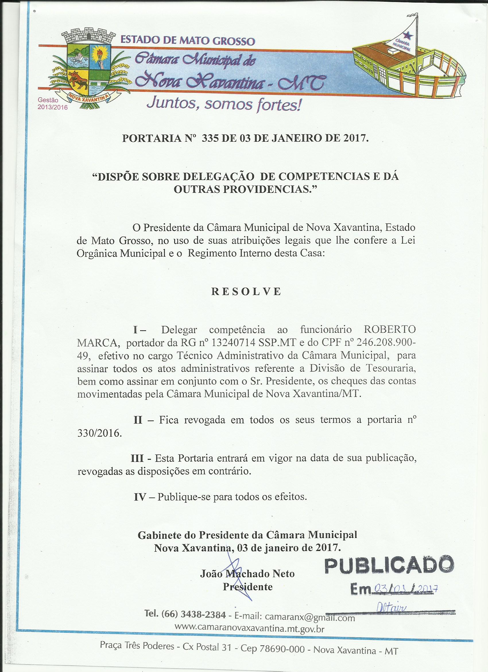 Portaria nº 335 - Divisão de Tesouraria- Roberto Marca